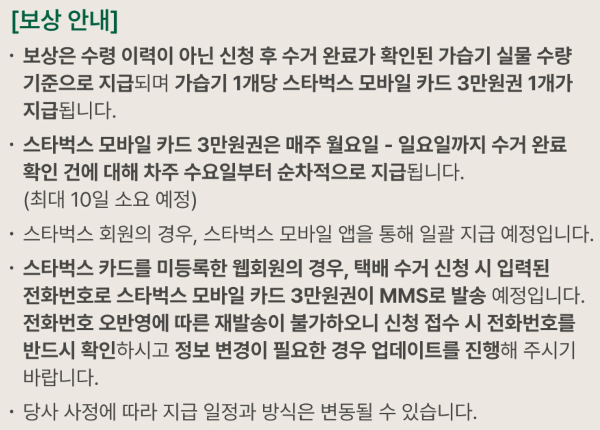 ※ 회수 비용은 전액 스타벅스 부담입니다.
